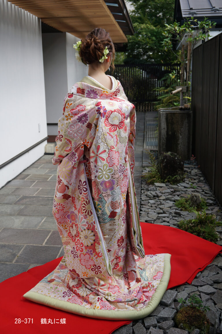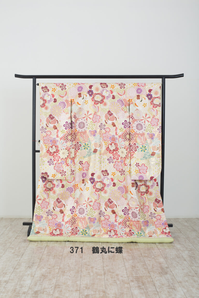 桜や牡丹、梅、菊など華やかに咲き誇る花々とその中に飛翔する鶴と蝶