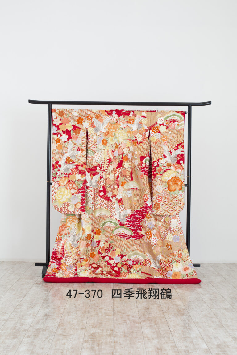 金糸の輝きと赤や橙のあたたかな色合いが調和し、晴れの日にふさわしい華やかさを演出します。