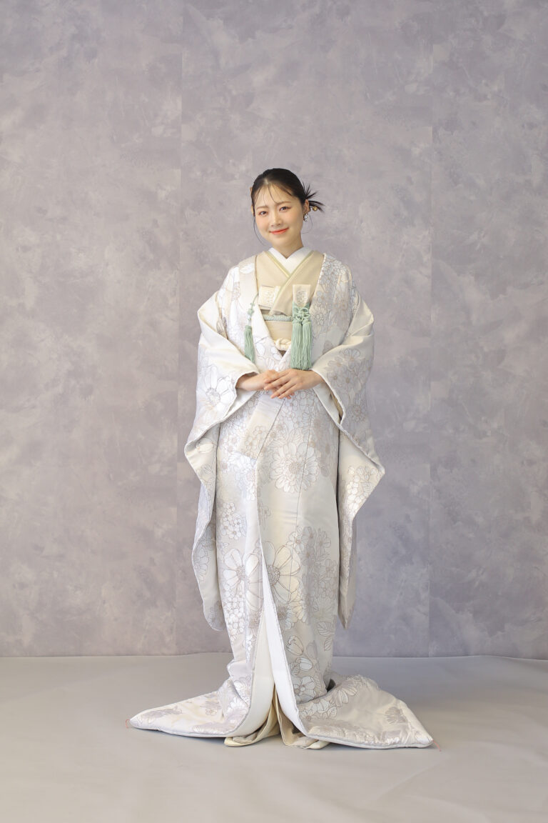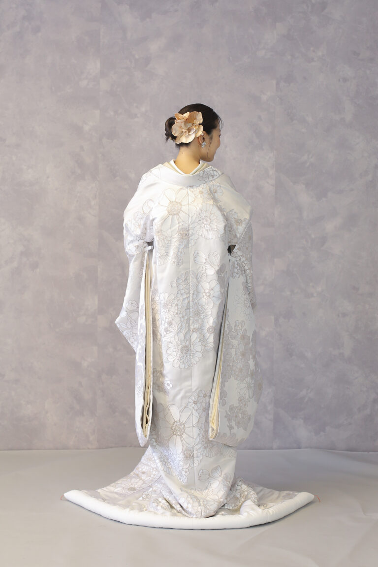 白無垢に金糸を織り込み柄がはっきり見える豪華な白無垢です。