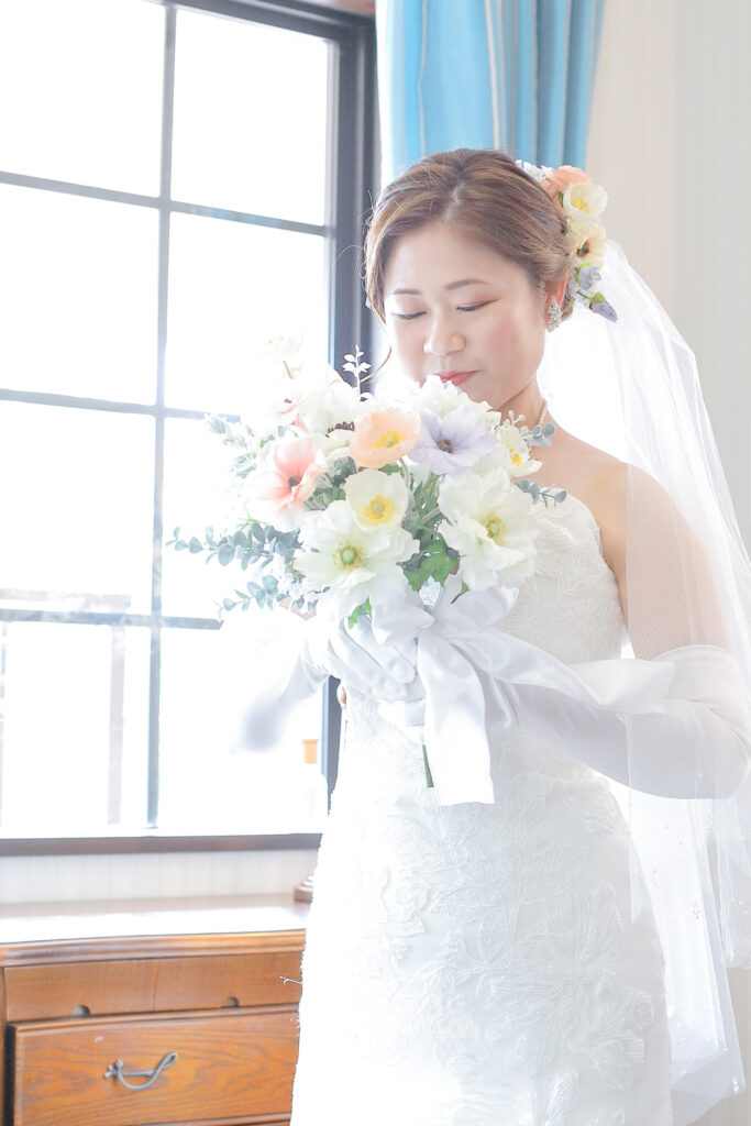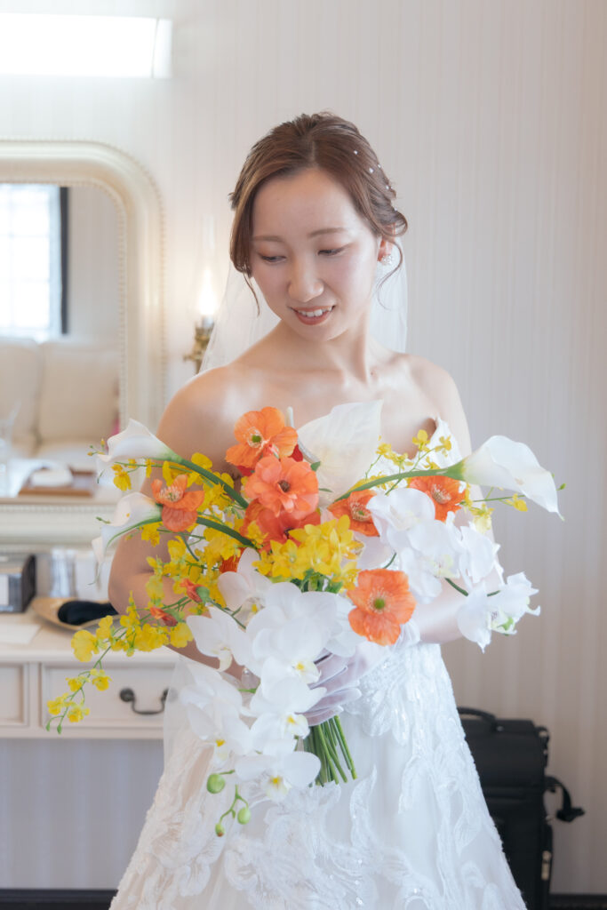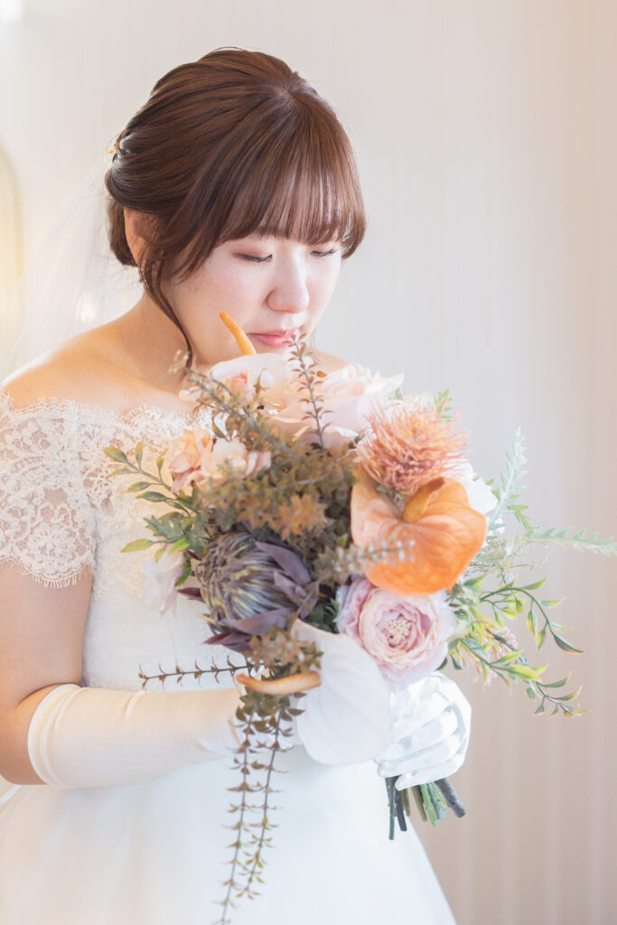 ドレスに合わせるブーケは、全体の雰囲気を決める大事なポイントです。