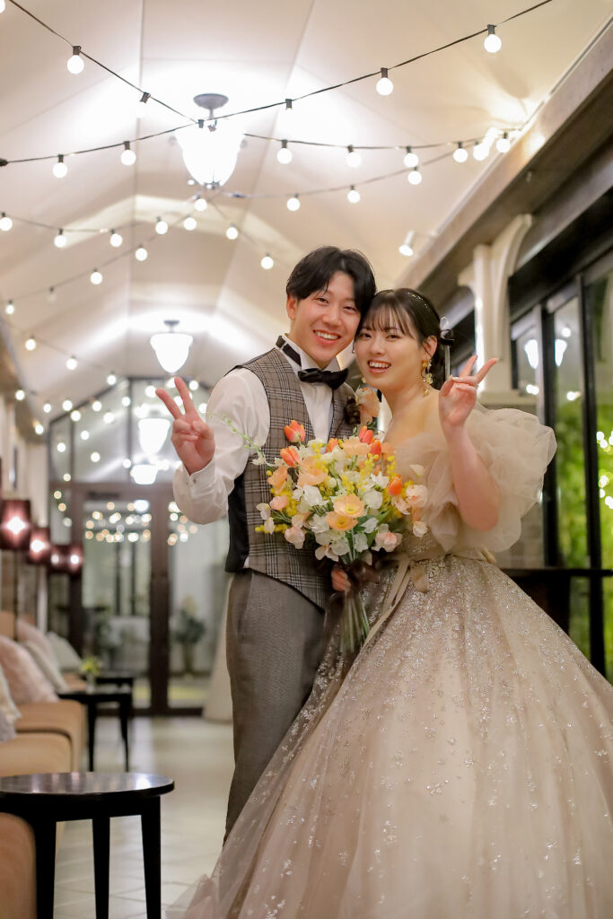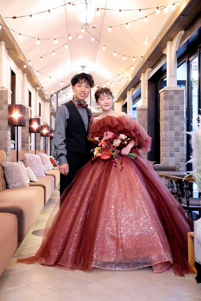 「ドレスの雰囲気を壊さず、写真に映えるコントラスラストをつける」のがオシャレに見えるコツです。