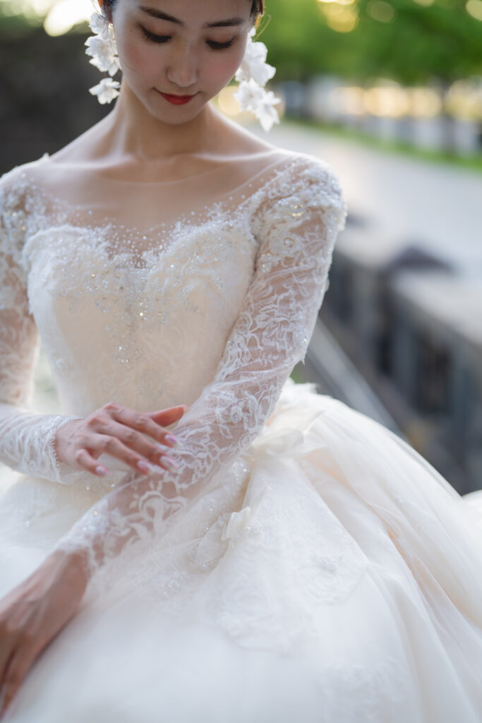「肌見せを抑えたい」「クラシカルで安心感のある雰囲気にしたい」という花嫁様におすすめのスタイルです。