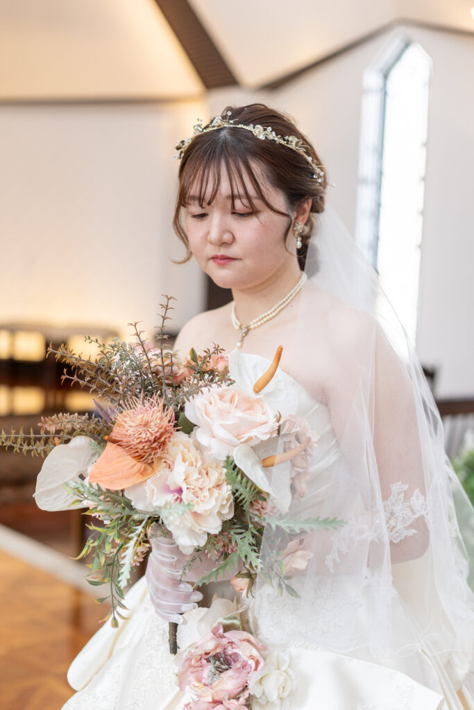 ・ショートベールorなし: 軽やかでナチュラル。ガーデンやカジュアルウェディングに◎