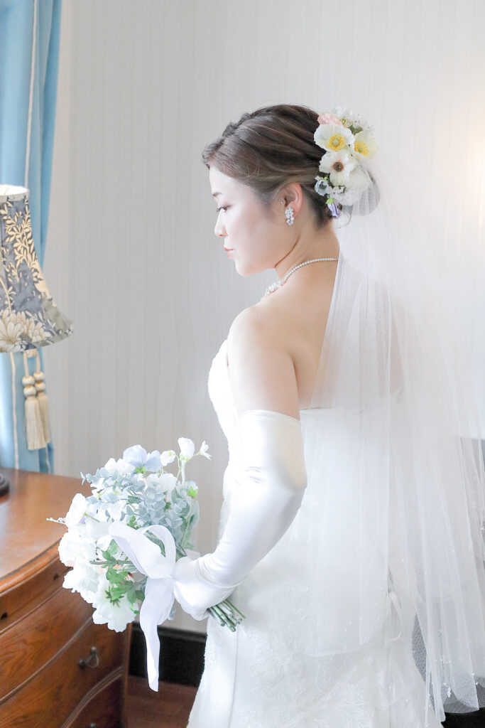 例: ヘッドアクセサリー+ブーケ+イヤリング