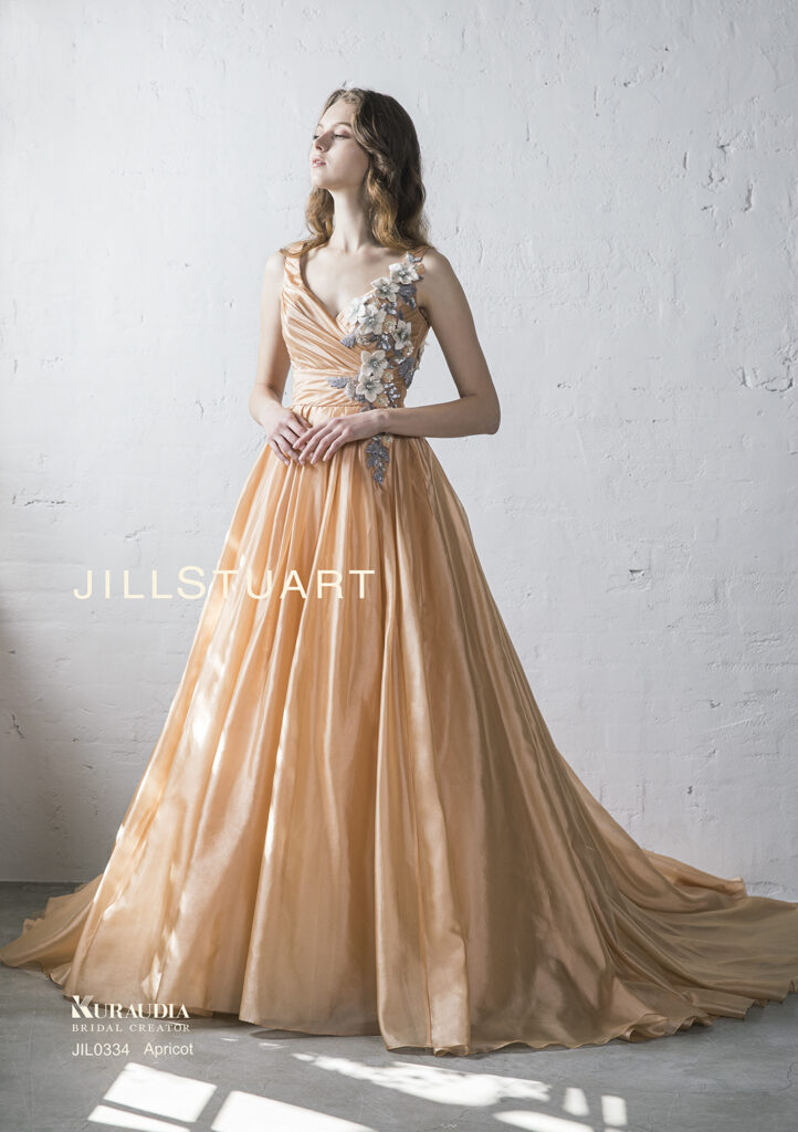 ・ドレスの特徴:太陽の光に映えるオレンジ系は夏婚の定番。