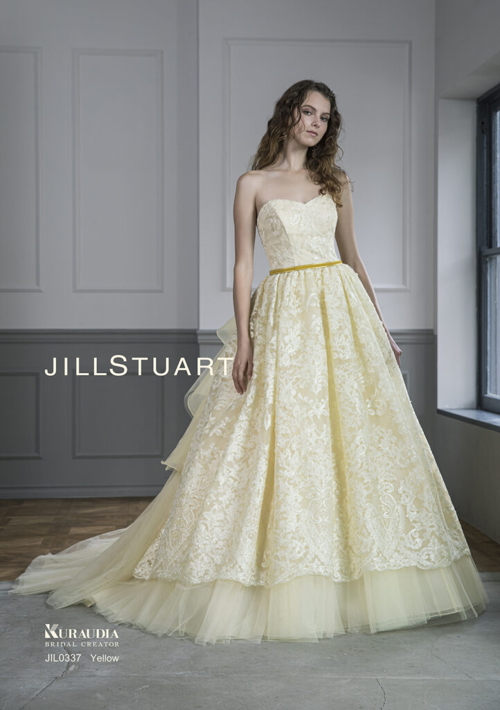 ・ドレスの特徴:やわらかいパステルイエローは軽やかでフレッシュ。