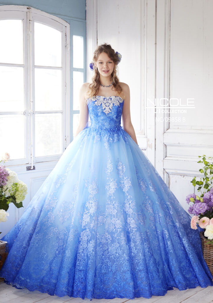 ・ドレスの特徴:軽やかで透明感のあるブルー。涼しげで夏に映える。