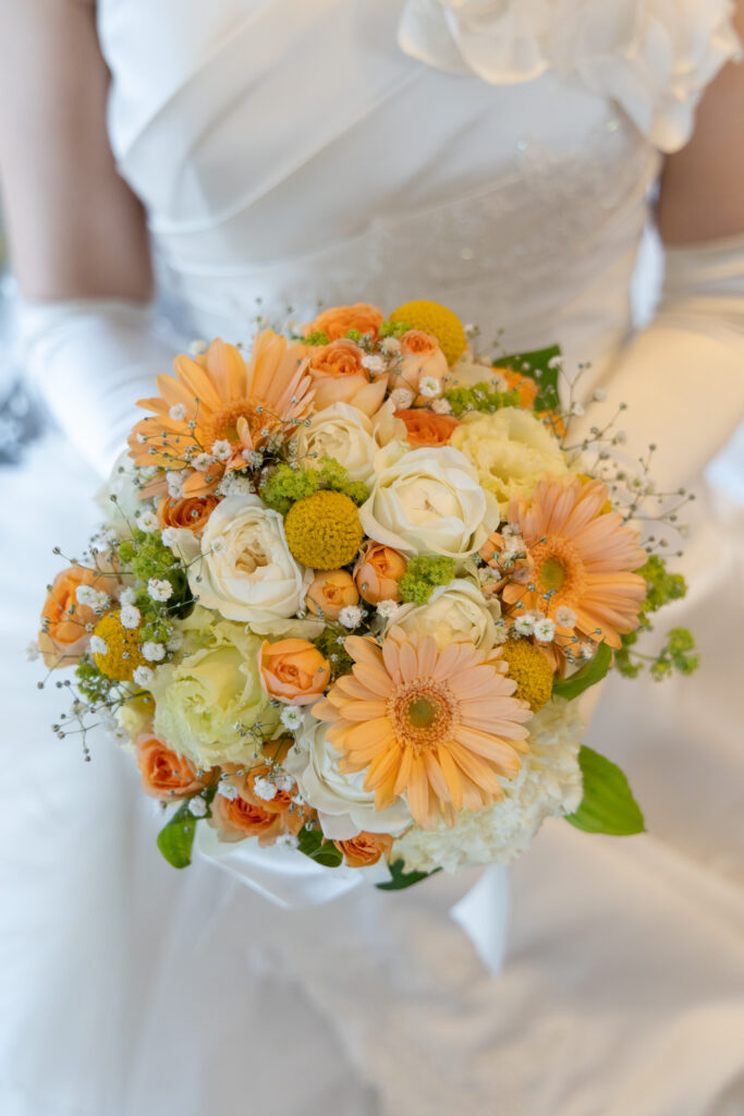 ⑤コーラルオレンジ×ガーベラ&ダリアブーケ