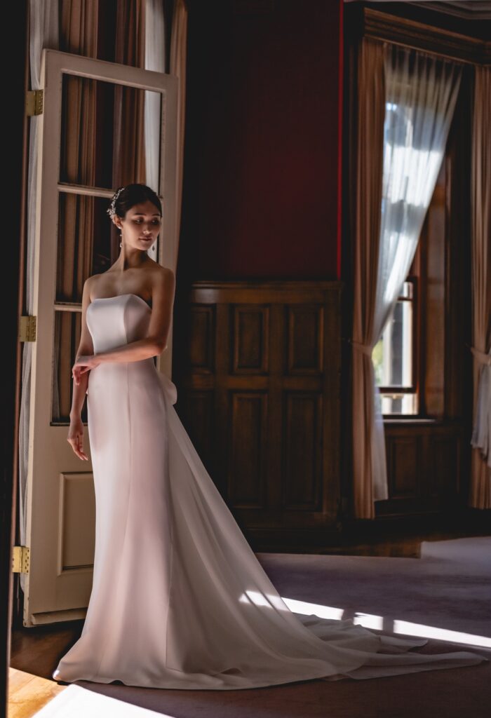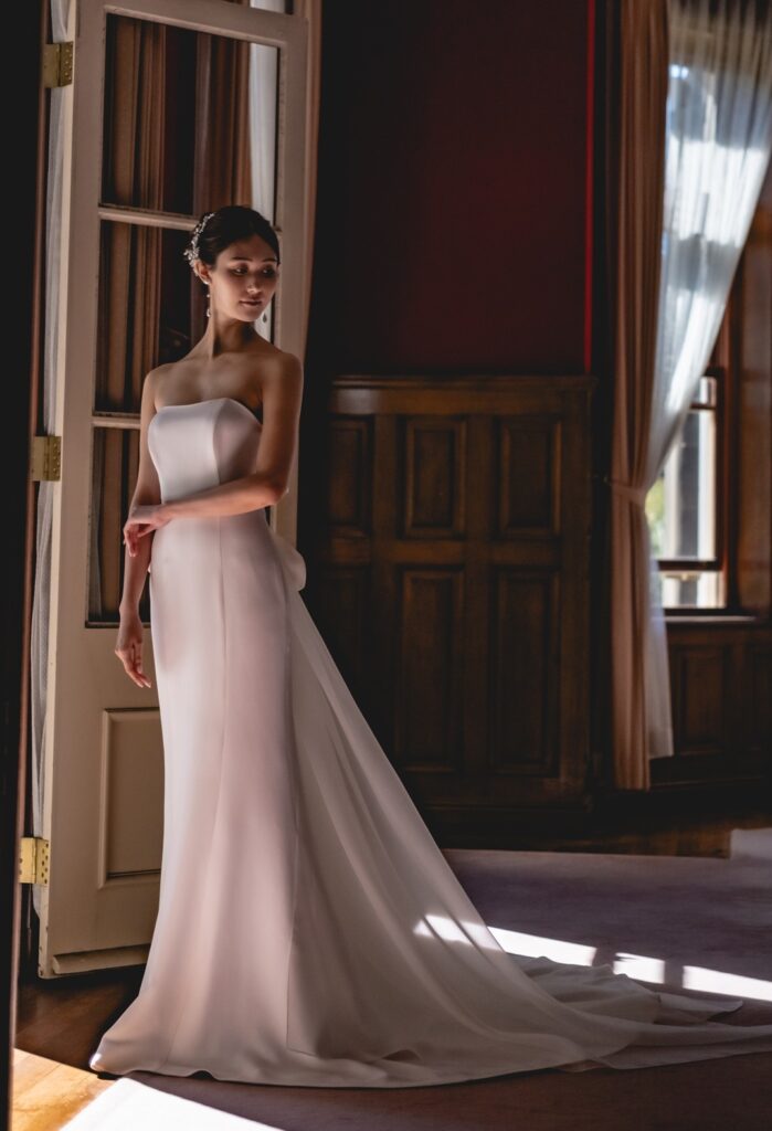 特にフォト婚では、背景や光とのバランスが重要になるため、装飾 少なめ ドレスは非常に相性が良いのです。